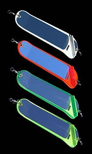 Conventional 8" and 11" flashers have been used by sport and commercial fishermen for decades. Rigged right, they are the top salmon catching devices in the world. The flashers are normally made of bright colored plastic and have colored tape on both sides. Embossed silver tape is very popular as is glow in the dark tape and various colors of tape.